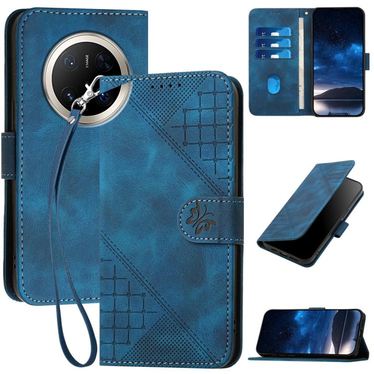 Funda de Cuero Huawei Mate 70 Pro y Mate 70 Pro+ con Diseño Mariposa y Cordón (Azul Oscuro)