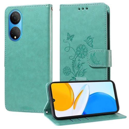 Funda de Cuero para Honor X7 4G y Huawei Enjoy 30 Plus con Diseño de Mariposas y Flores en Relieve (Verde)