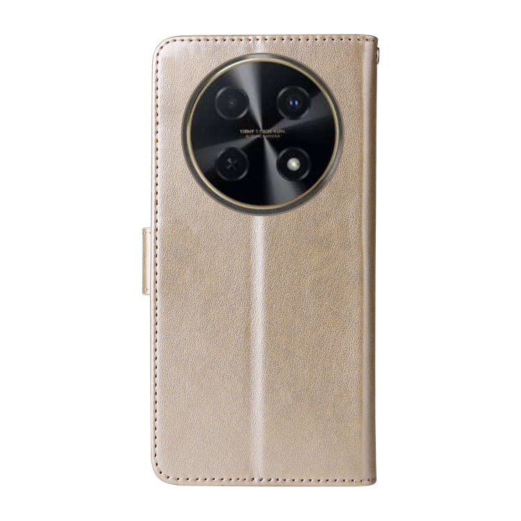 Funda de Cuero Huawei Enjoy 70 Pro 4G Nova 12I con Diseño de Mariposas y Flores en Relieve (Dorada)