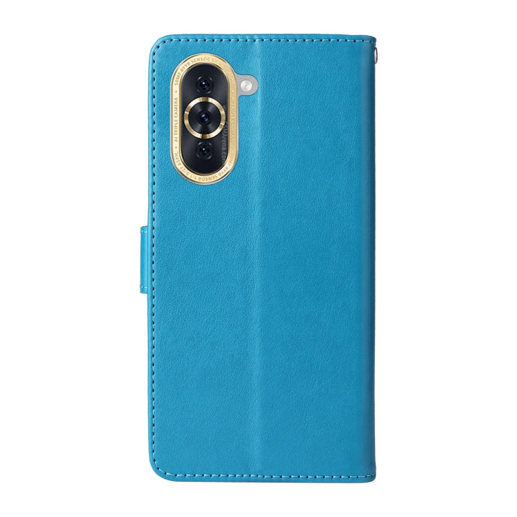 Funda de Cuero Huawei Nova 10 con Diseño de Mariposas y Flores en Relieve (Azul)