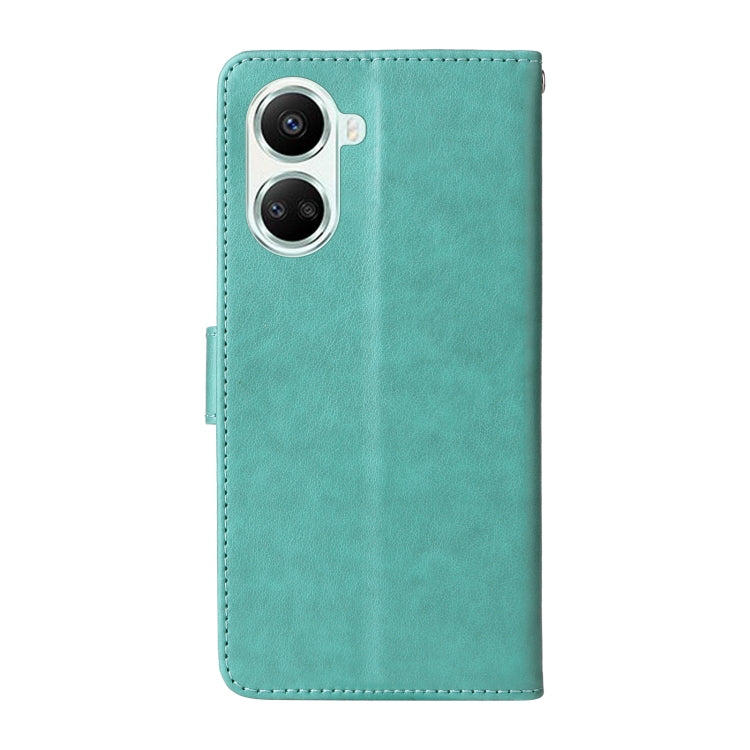 Funda de Cuero Huawei Nova 10 Se con Diseño de Mariposas y Flores en Relieve (Verde)