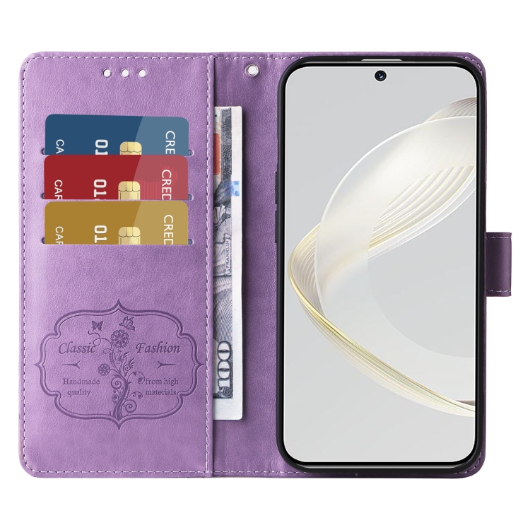 Funda de Cuero Huawei Nova 11 5G/4G y Nova 12 Lite con Diseño de Mariposas y Flores en Relieve (Morado)