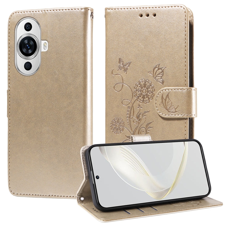 Funda de Cuero Huawei Nova 11 Pro Nova 11 Ultra Diseño Mariposas Flores (Dorada)