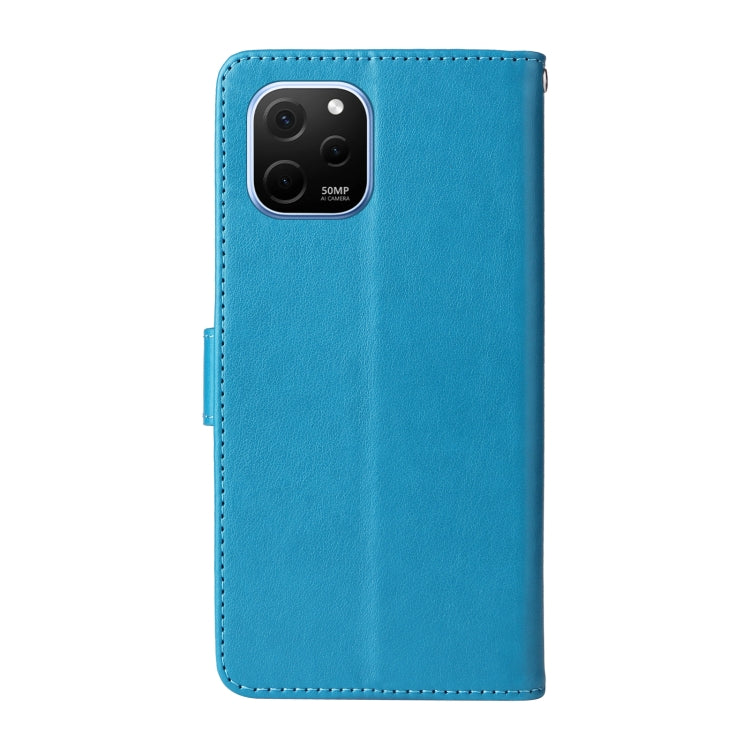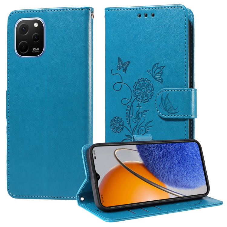Funda de Cuero Huawei Nova Y61 Enjoy 50Z Diseño Mariposas y Flores En Relieve (Azul)