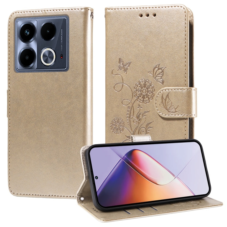 Funda de Cuero para Infinix Note 40 4G con Diseño de Mariposas y Flores en Relieve (Dorada)