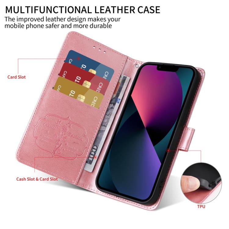 Funda de Cuero Motorola Moto G05/E15 con Diseño de Mariposas y Flores en Relieve (Oro Rosa)