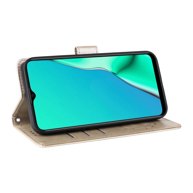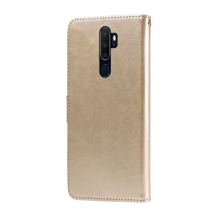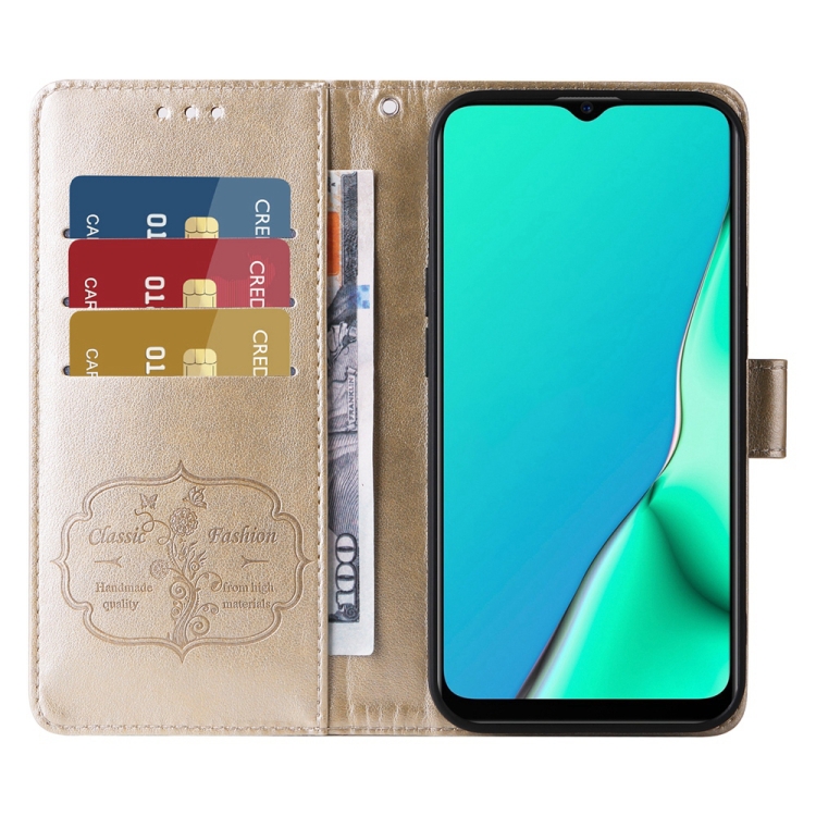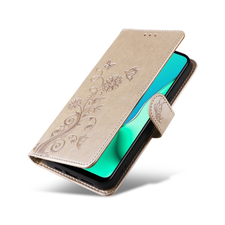 Funda de Cuero con Diseño de Mariposas y Flores En Relieve para Oppo A9 2020/A11X/A5 2020/A11 (Dorada)