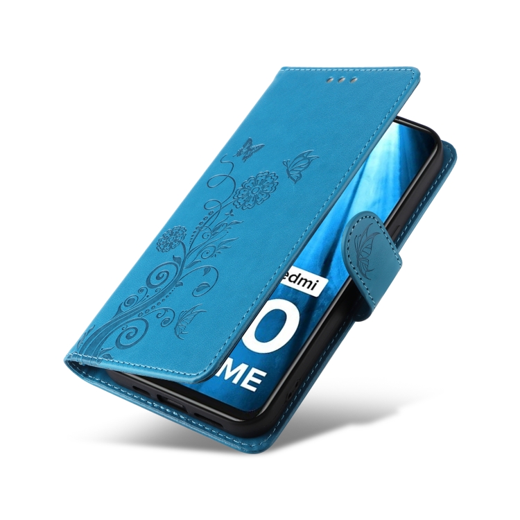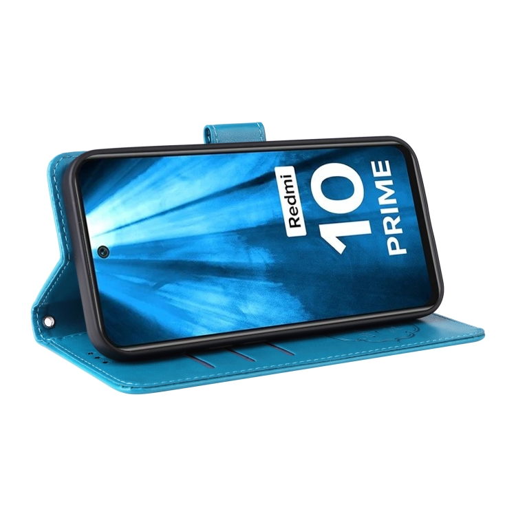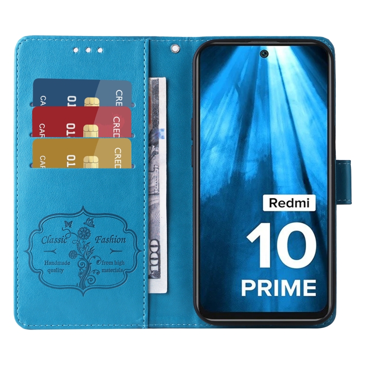 Funda de Cuero con Diseño de Mariposas y Flores En Relieve para Redmi 10 2022/10 Prime (Azul)