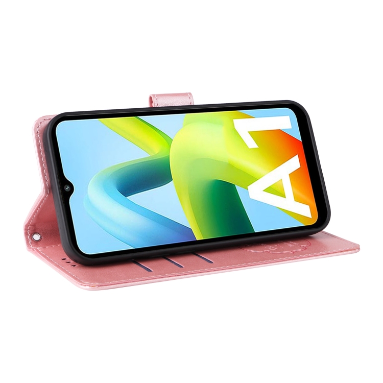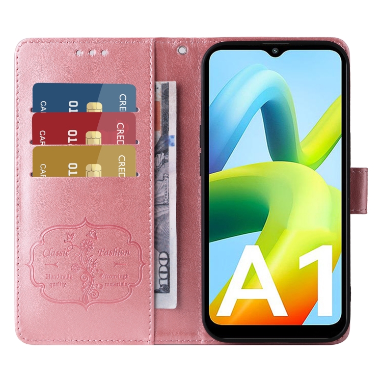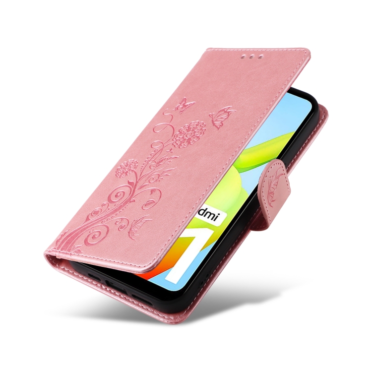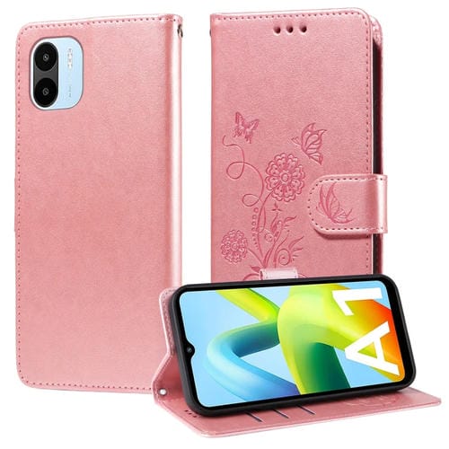 Funda de Cuero con Diseño de Mariposas y Flores En Relieve para Redmi A1 4G/A2 4G (Oro Rosa)