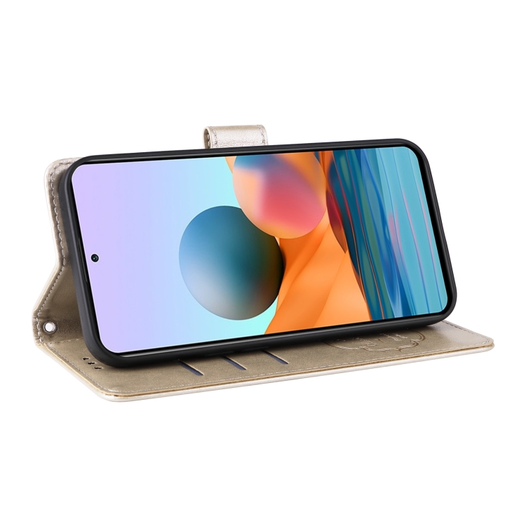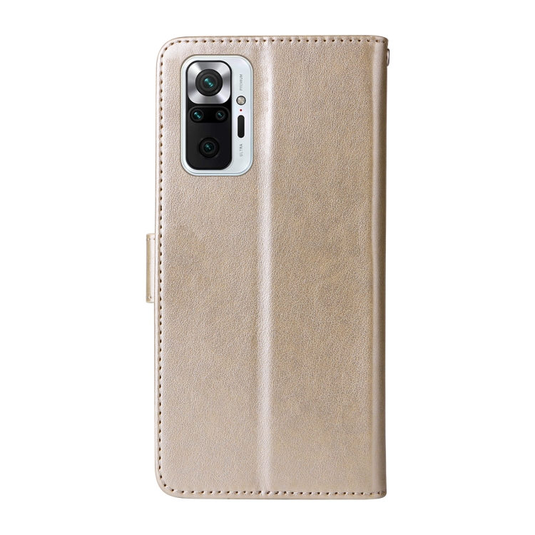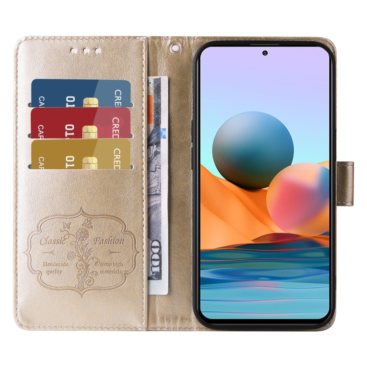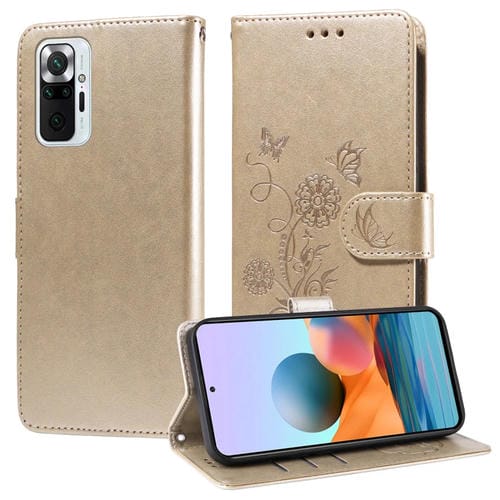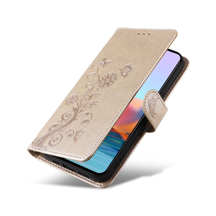 Funda de Cuero con Diseño de Mariposas y Flores En Relieve para Redmi Note 10 Pro 4G/Note 10 Pro Max (Dorada)
