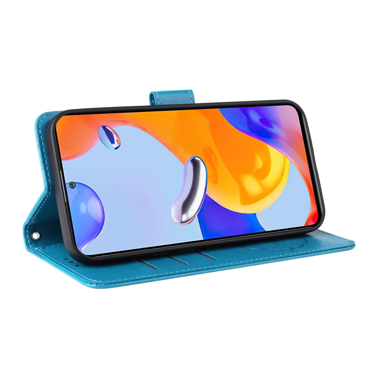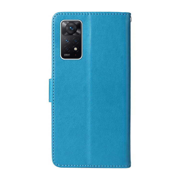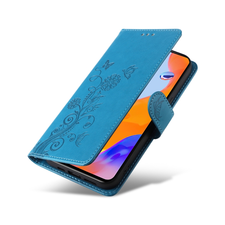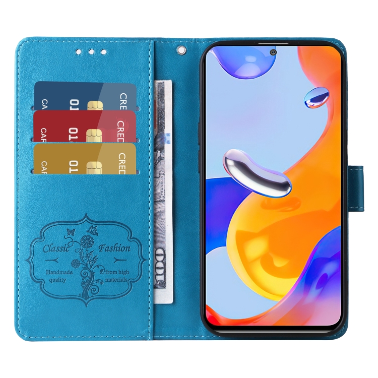 Funda de Cuero con Diseño de Mariposas y Flores En Relieve para Redmi Note 11 Pro 5G/4G (Azul)