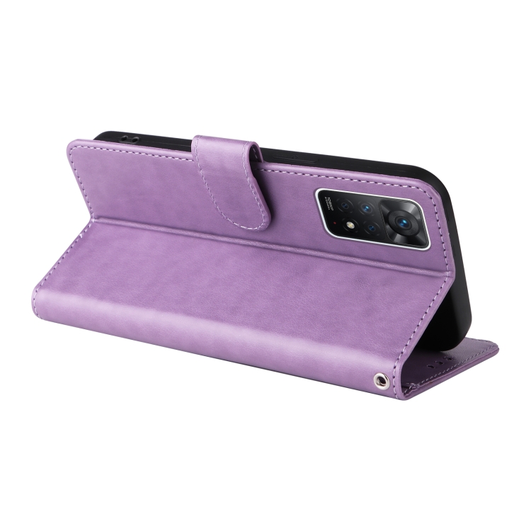 Funda de Cuero con Diseño de Mariposas y Flores En Relieve para Redmi Note 11 Pro 5G/4G (Morado)