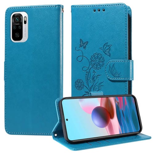 Funda de Cuero con Diseño de Mariposas y Flores En Relieve para Redmi Note 11 Se 4G (Azul)
