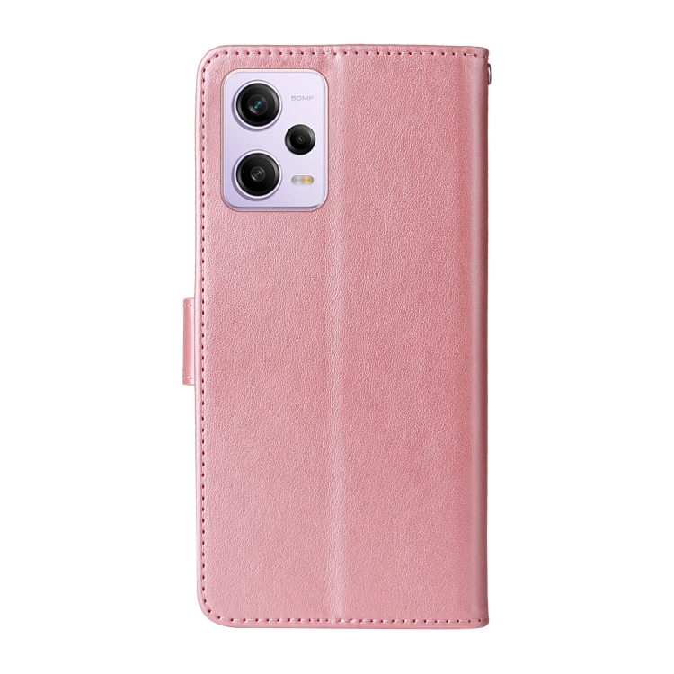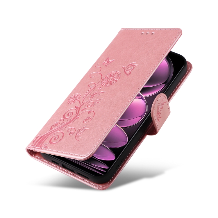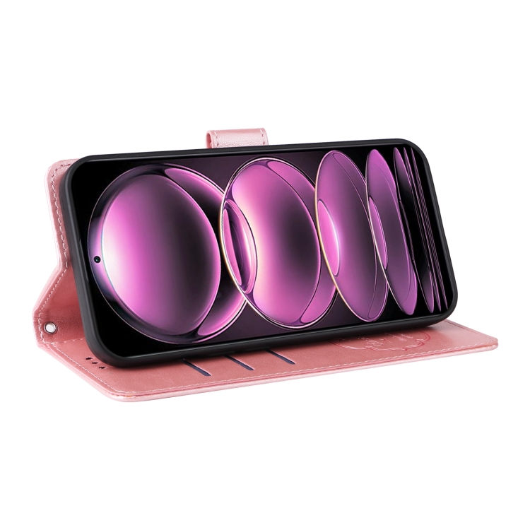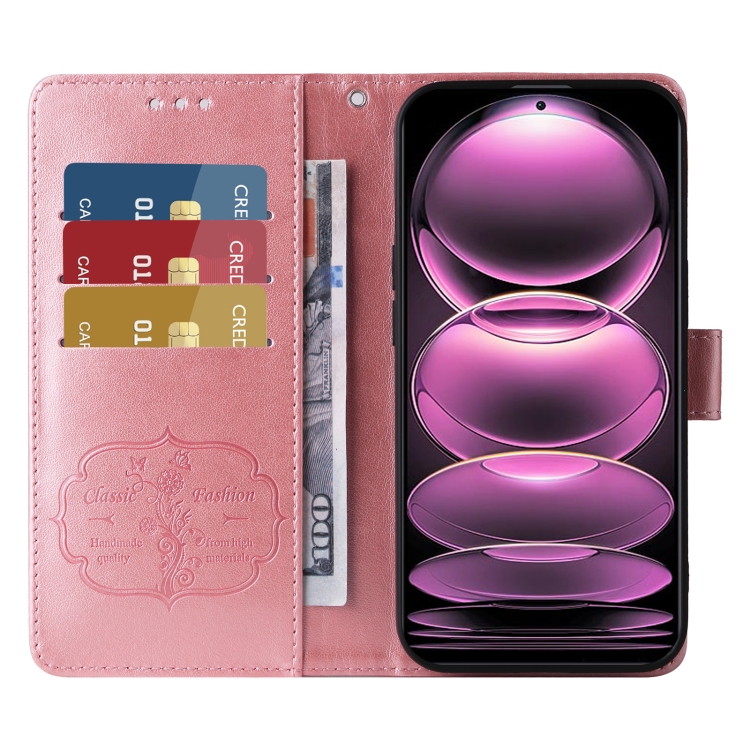 Funda de Cuero con Diseño de Mariposas y Flores En Relieve para Redmi Note 12 Explorer/Note 12 Pro+ (Oro Rosa)