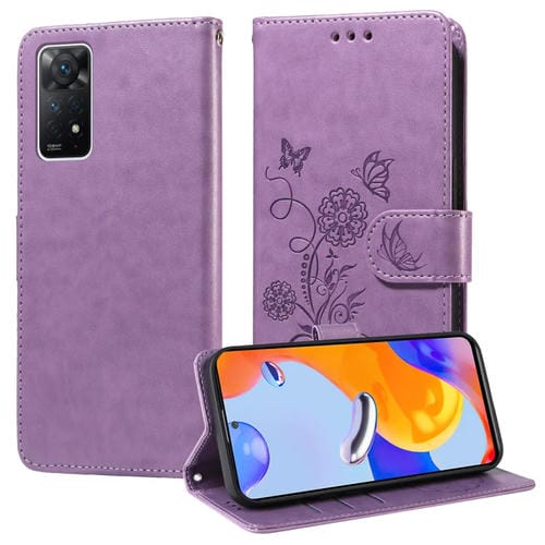 Funda de Cuero con Diseño de Mariposas y Flores En Relieve para Redmi Note 12 Pro 4G (Morado)