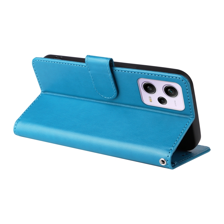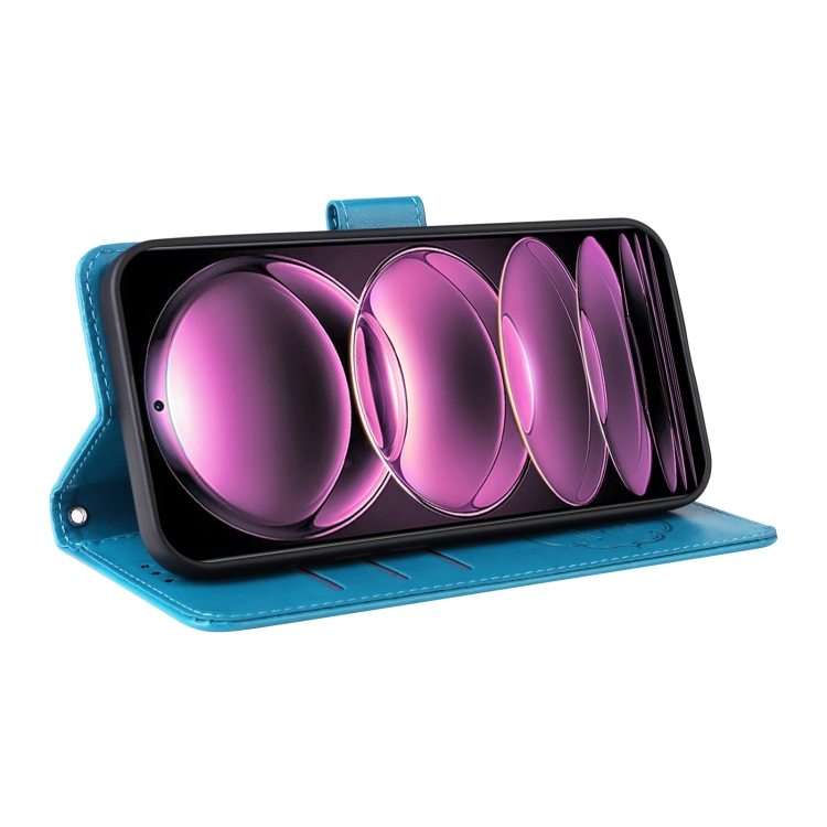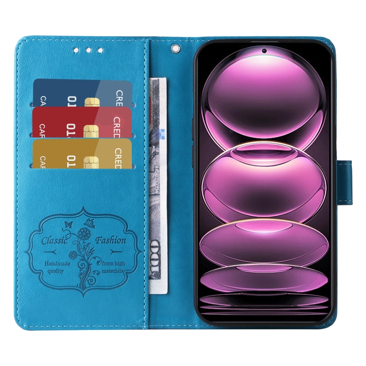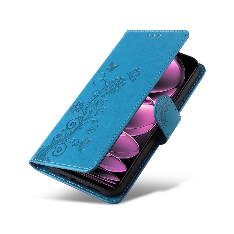 Funda de Cuero con Diseño de Mariposas y Flores En Relieve para Redmi Note 12 Pro 5G (Azul)
