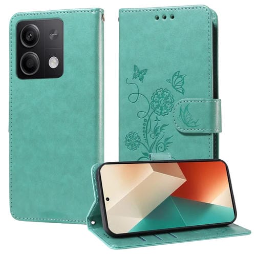 Funda de Cuero con Diseño de Mariposas y Flores En Relieve para Redmi Note 13 5G (Verde)