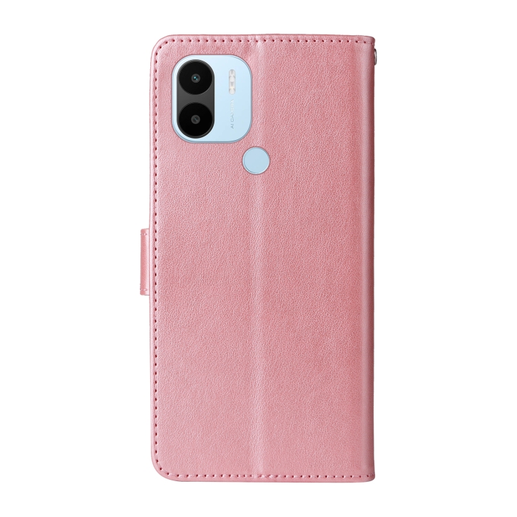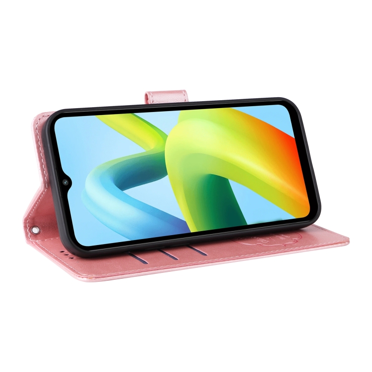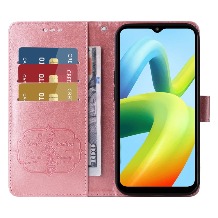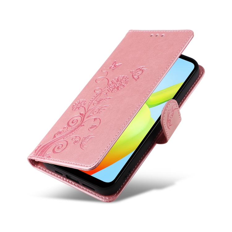 Funda de Cuero con Diseño de Mariposas y Flores En Relieve para Xiaomi Poco C50/C51 (Oro Rosa)