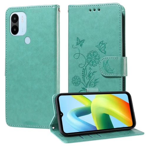 Funda de Cuero con Diseño de Mariposas y Flores En Relieve para Xiaomi Poco C50/C51 (Verde)