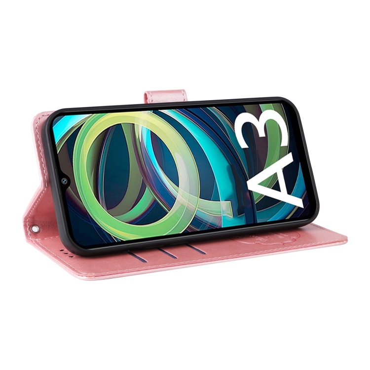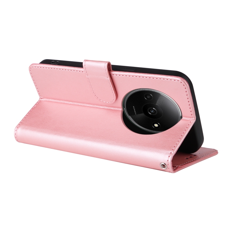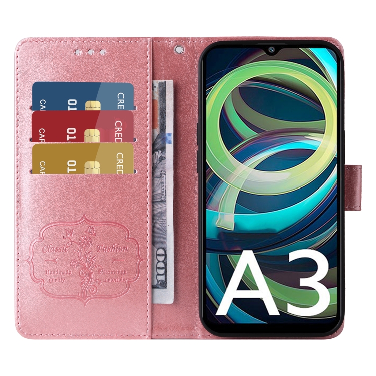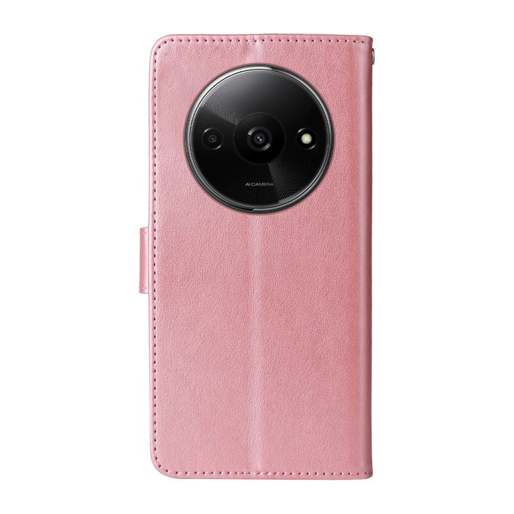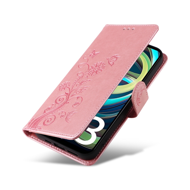 Funda de Cuero con Diseño de Mariposas y Flores En Relieve para Xiaomi Poco C61 4G/Redmi A3 4G (Oro Rosa)