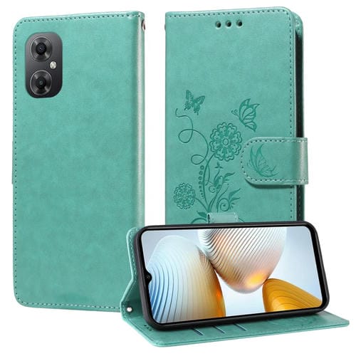 Funda de Cuero con Diseño de Mariposas y Flores En Relieve para Xiaomi Poco M4 5G/M5 4G (Verde)