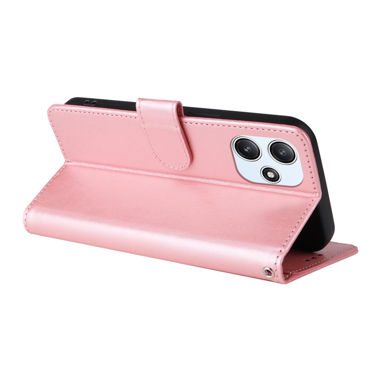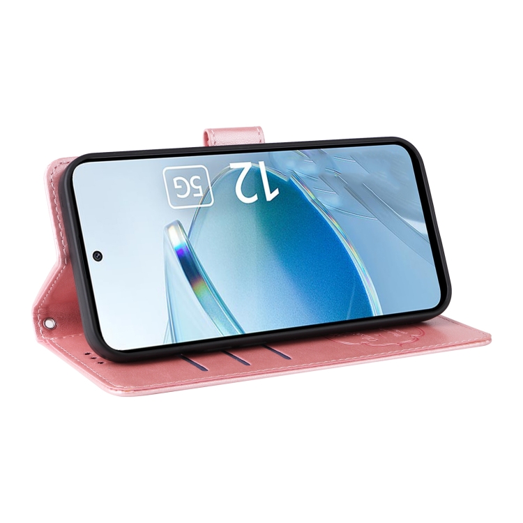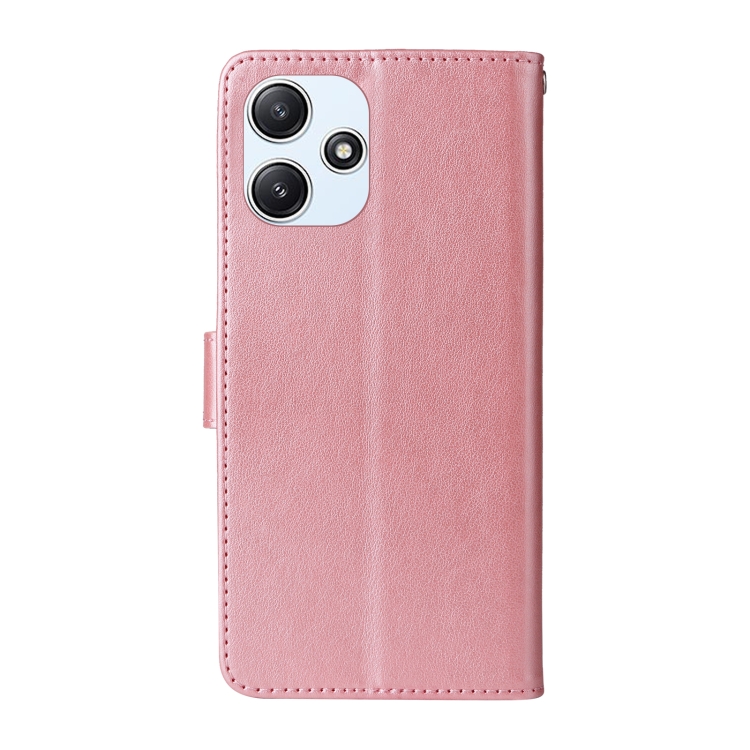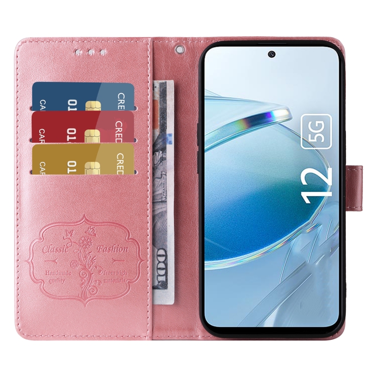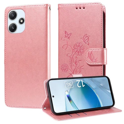 Funda de Cuero con Diseño de Mariposas y Flores En Relieve para Xiaomi Poco M6 Pro 5G (Oro Rosa)