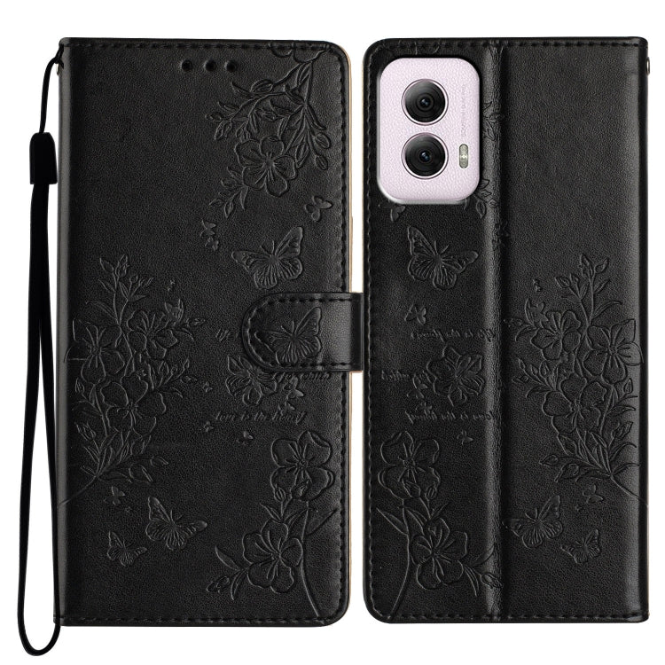 Funda de Cuero Motorola Moto G Power 5G con Diseño Mariposas y Flores (Negra)
