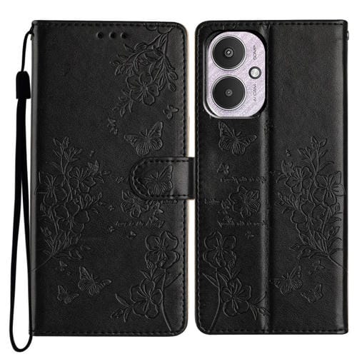 Funda de Cuero con Diseño de Mariposas y Flores para Redmi 13C 4G (Negra)