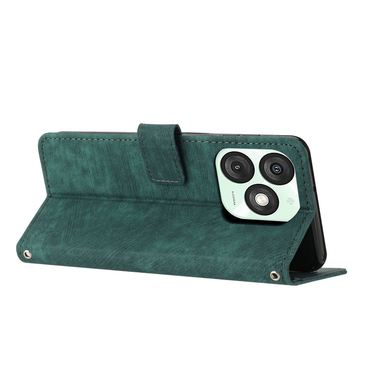 Funda de Cuero para Itel A50 con Diseño de Rayas y Cordón (Verde)
