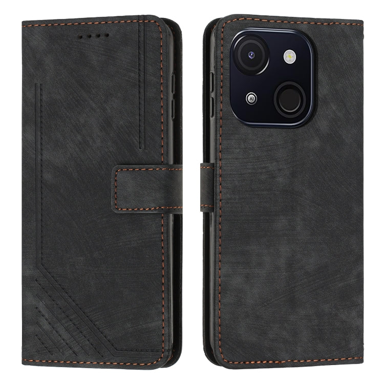 Funda de Cuero Itel A50C con Diseño de Rayas y Cordón (Negro)