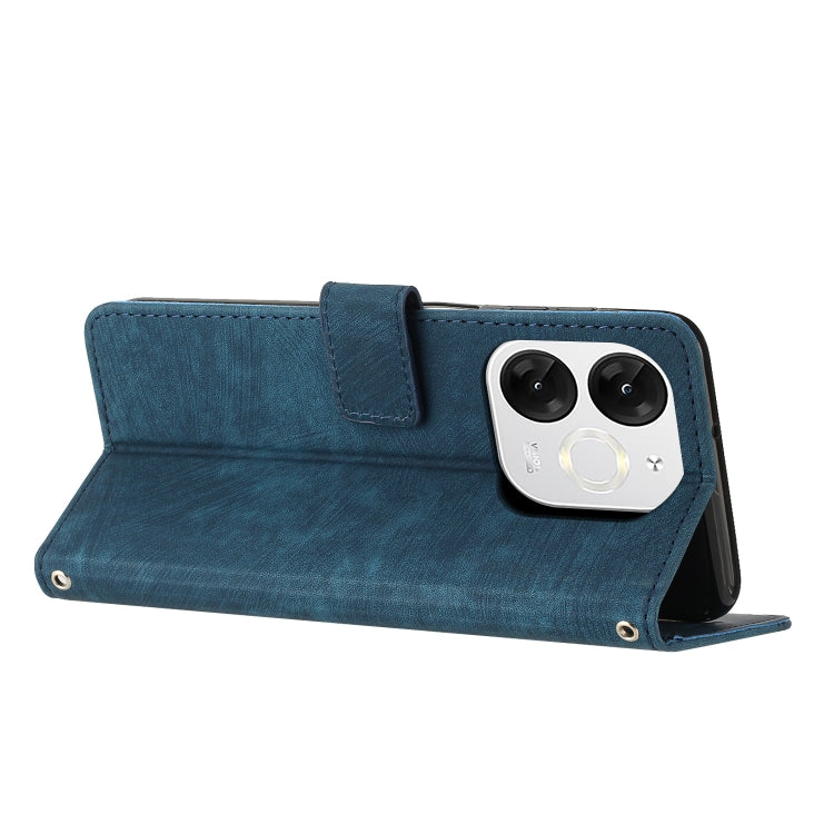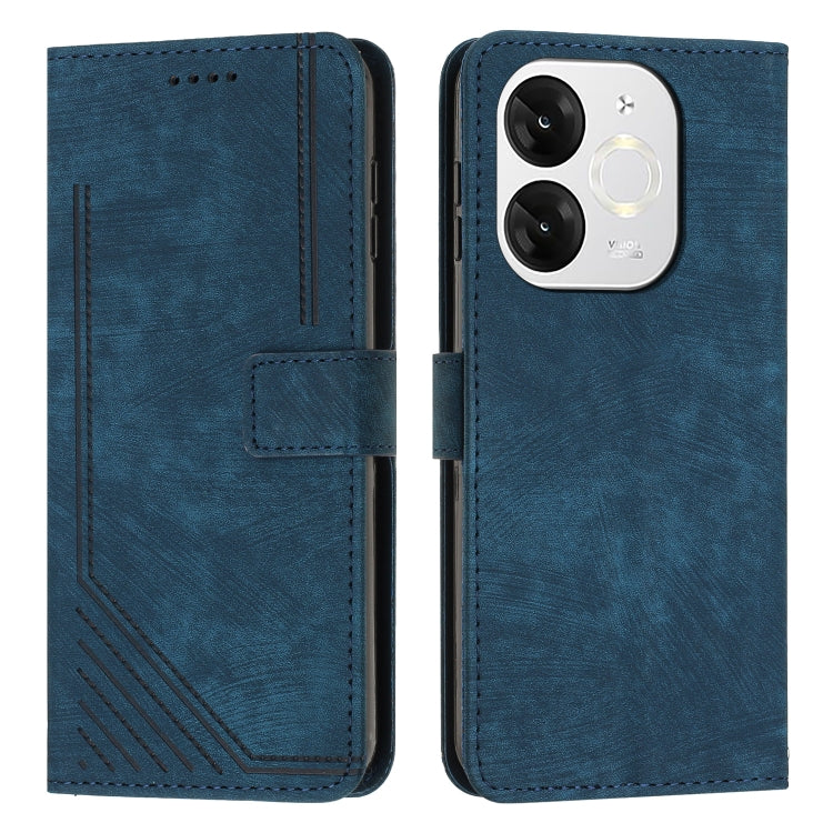 Funda de Cuero Itel A80 con Diseño de Rayas y Cordón (Azul) Tacto Agradable Rostro