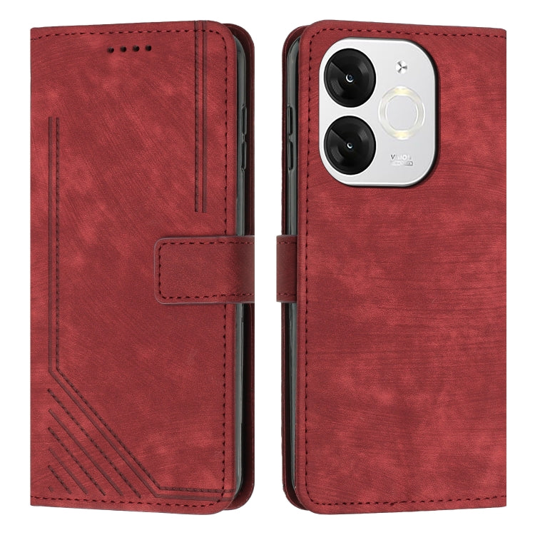 Funda de Cuero para Itel A80 con Diseño de Rayas y Cordón (Rojo)