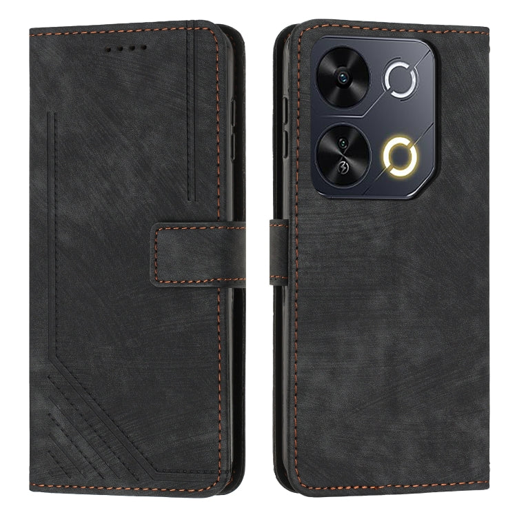 Funda de Cuero Itel P65 con Diseño de Rayas y Cordón (Negro)