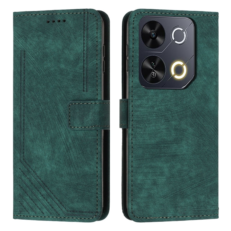 Funda de Cuero Itel P65 con Cordón Diseño de Rayas Tacto Piel (Verde)