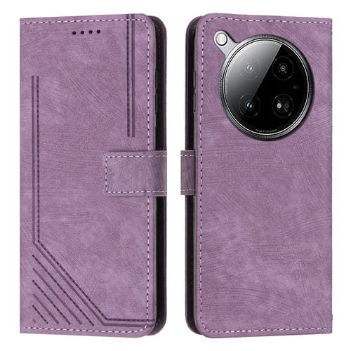 Funda de Cuero para Infinix Zero 40 4G con Diseño de Rayas y Tacto Sedoso (Morado)