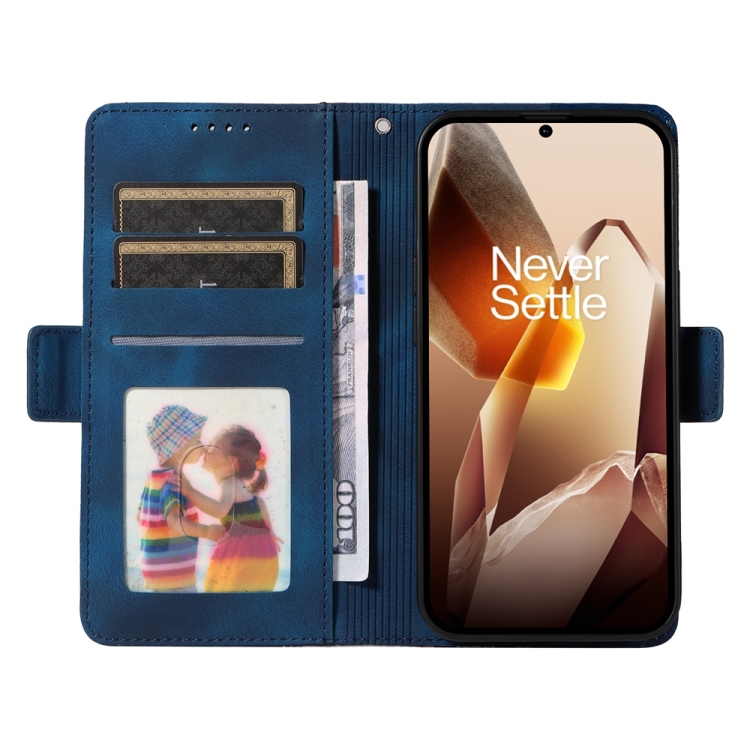 Funda de Cuero OnePlus 13 Diseño de Rombos y Estrellas En Relieve (Azul)