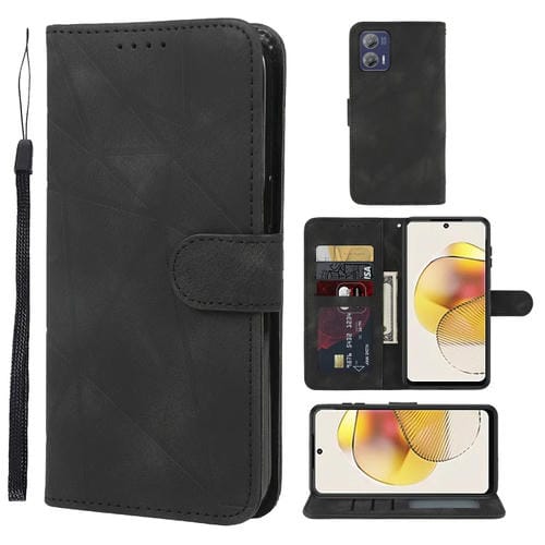 Funda de Cuero para Motorola Moto G73 con Diseño Geométrico y Líneas (Negro)