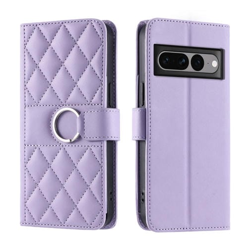 Funda de Cuero con Diseño Rombal y Hebilla para Google Pixel 7 Pro (Morado)