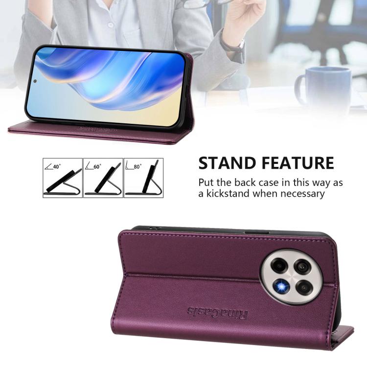 Funda de Cuero con Doble Pliegue y Succión Magnética para OnePlus 13R / Ace 5 / Ace 5 Pro Rc01 (Violeta)