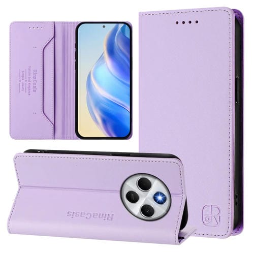 Funda de Cuero con Doble Pliegue y Succión Magnética para Redmi 14C 4G / 14R 5G Global Rc01 (Morado Claro)