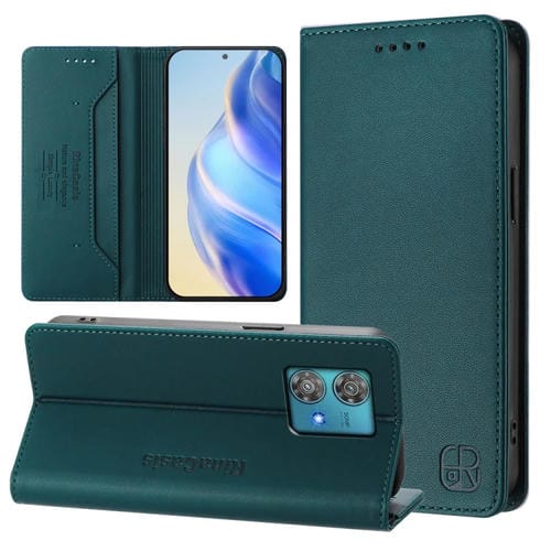 Funda de Cuero Motorola Edge 40 Neo Rc01 con Doble Pliegue y Succión Magnética (Verde Oscuro)