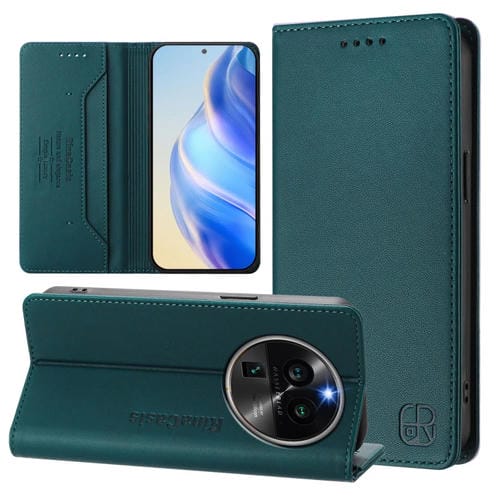 Funda de Cuero con Doble Pliegue y Succión Magnética Rfid para Oppo Find X6 Pro Rc01 (Verde Oscuro)