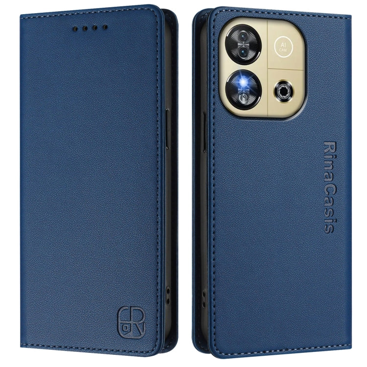 Funda de Cuero Oukitel C57/C57S/C57 Pro Rc01 con Doble Pliegue y Succión Magnética (Azul Oscuro)