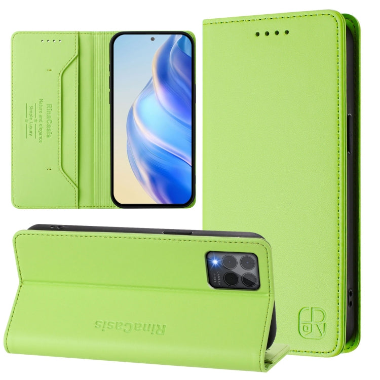 Funda de Cuero T-Mobile Revvl 6 Pro/6X Pro 5G Rc01 con Doble Pliegue y Succión Magnética (Verde Hierba)