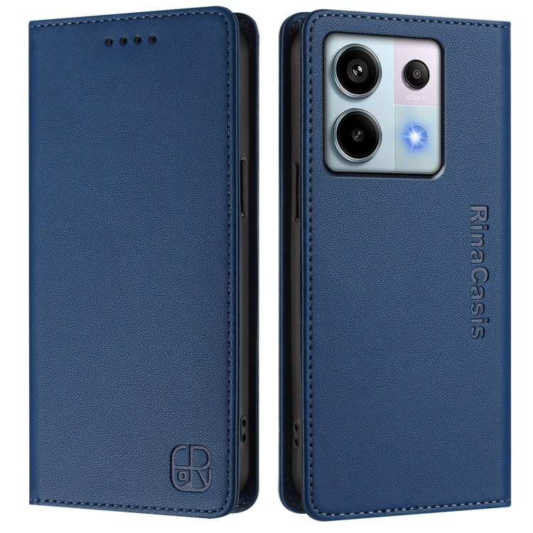 Funda de Cuero con Doble Pliegue y Succión Magnética para Teléfono Xiaomi Poco X6 5G/Redmi Note 13 Pro 5G Rc01 (Azul Oscuro)