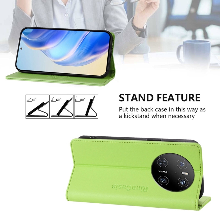 Funda de Cuero Huawei Mate 70 Rc01 con Doble Pliegue y Succión Magnética Rfid (Verde Hierba)