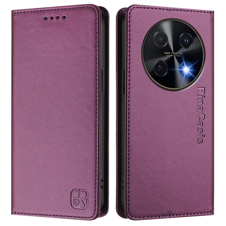 Funda de Cuero Huawei Nova 12I Rc01 con Doble Pliegue y Succión Magnética Rfid (Violeta)