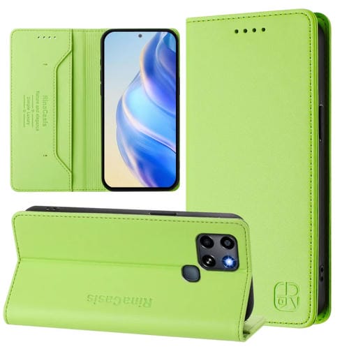Funda de Cuero con Doble Pliegue y Succión Magnética Rfid para Infinix Smart 6/6 Plus/6 HD Rc01 (Verde Hierba)