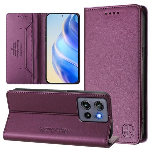 Funda de Cuero con Doble Pliegue y Succión Magnética Rfid para Motorola Thinkphone 25/Edge 50 Neo Rc01 (Violeta)