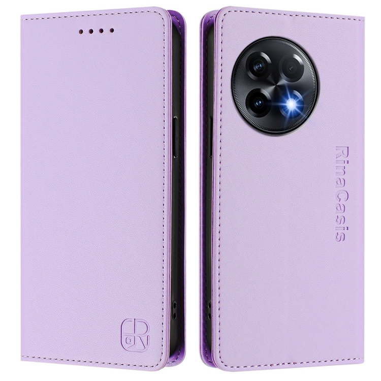 Funda de Cuero con Doble Pliegue y Succión Magnética RFID para OnePlus 11R Rc01 (Morado Claro)